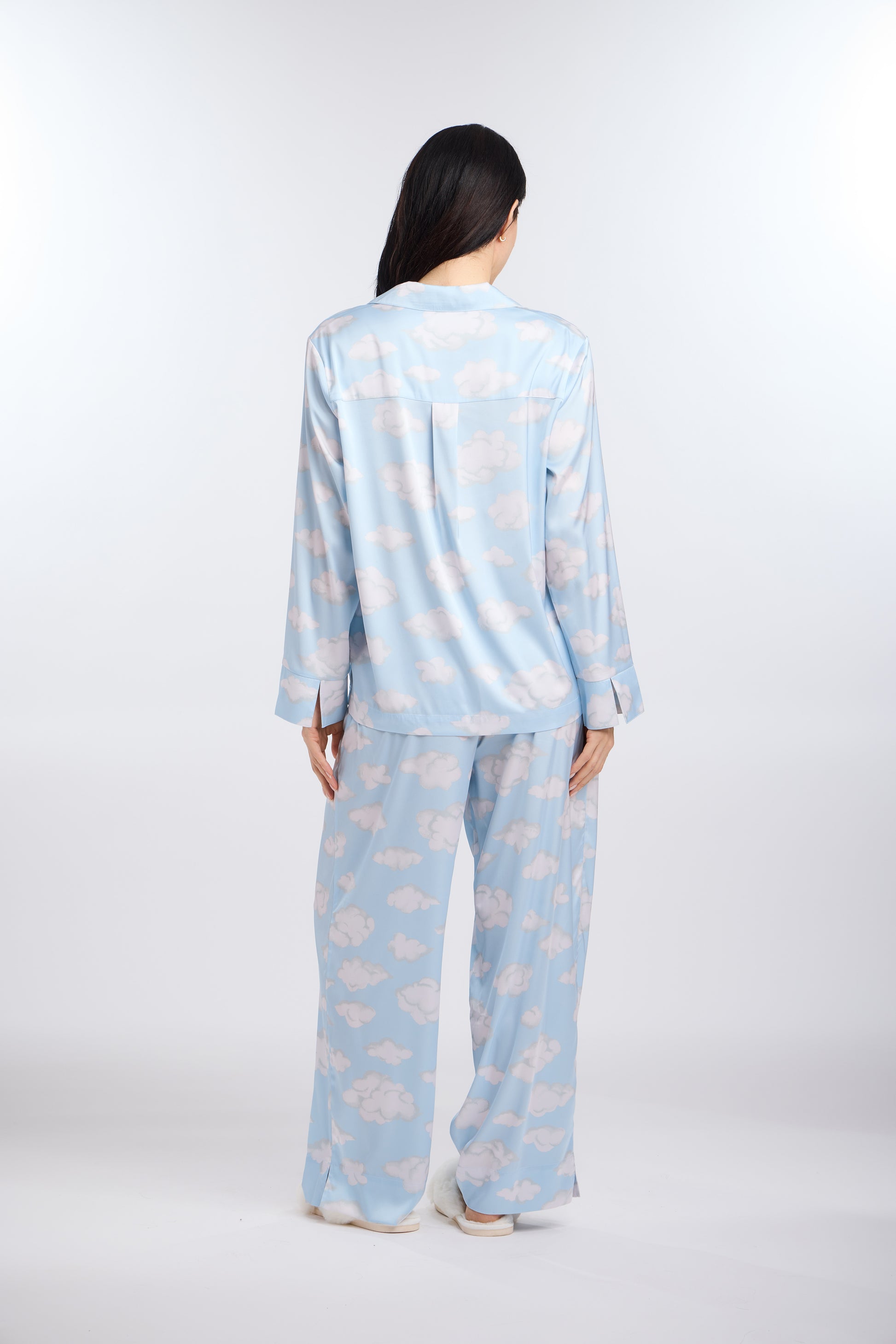 Bring cozy nostalgia to bedtime in our Cloud Nine Long Sleeve PJ Set, crafted from soft satin and finished with our vintage cloud print that floats you straight to dreamland. Perfect for cool nights, weekend lounging, and carefree mornings.